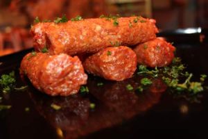 Zartes, gemischtes Hackfleisch, deftig gewürzt mit Zwiebeln, Knoblauch, Kräutern, Paprika und anderen mediterranen Gewürzen.
