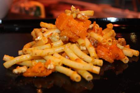Nudelsalat mit Kürbis in einem feinen Orangen Dressing mit Nüssen, Gewürzen und Kürbisstückchen. Wir wünschen Ihnen einen guten Appetit