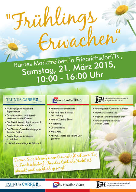 Sehr geehrte Kundinnen und Kunden, geniessen Sie das Frühlingserwachen in Friedrichsdorf bei buntem Frühjahrstreiben und lassen Sie sich von uns speziell kulinarisch verwöhnen! Wir grillen für Sie vor der Metzgerei von 10 Uhr-16Uhr -Bärlauchbratwurst -Friedrichsdorfer 7-Kräuterbratwurst zusätzlich haben wir für Sie Kartoffelsalat mit Grüner Soße und Ei im Angebot! Wir freuen uns auf Sie