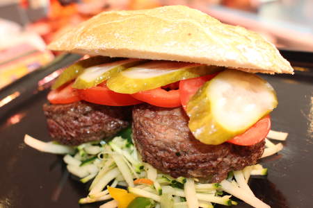 Rinder-Burger Zutaten: Rindfleisch, Zwiebeln, Salz, Pfeffer, Paprika und Muskat. Zubereitung: Die Burger kurz in der Pfanne von beiden Seiten anbraten und ca. 10 Minuten ruhen lassen. Wenn Sie möchten, und wenn es das Wetter zulässt, können Sie die Burger auch auf dem Grill zubereiten. Dazu empfehlen wir Ihnen: Gurken, Salat, Paprika oder Tomaten, ganz nach Belieben Wedges/Kartoffelecken oder Pommes frites.