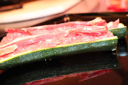 Gefüllte Zucchinischiffchen Zutaten: Hackfleisch(halb Rinderhack, halb Schweinehack),Dörrfleisch, Zwiebeln, Pfeffer , Salz Zubereitung: Bitte heizen Sie Ihren Ofen auf 120°Grad vor. Braten Sie dann einer heissen Pfanne die Zucchinischiffchen kurz auf der Oberseite,also der Dörrfleischseite, an, nur bis dieses kross ist, und lassen Sie die Schiffchen dann noch 10Minuten im Ofen ruhen. Dazu empfehlen wir Ihnen Reis oder Nudeln oder, je …