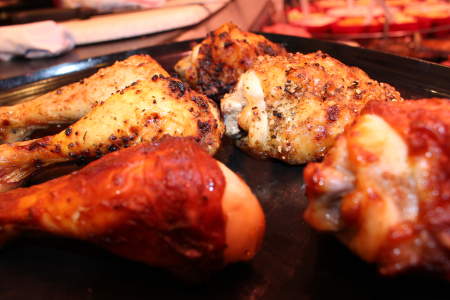 Dreierlei Hähnchenschenkel Zutaten: Hähnchenschenkel fertig geteilt, mit 3 unterschiedlichen Marinaden, nämlich: frische Kräuter, BBQ, Curry- Pfeffer, Zubereitung: Entweder auf dem Grill braten oder im vorgeheizten Ofen bei 160° C 25 min. Dazu empfehlen wir Ihnen Grillbeilagen oder Wedges mit frischem Kräuterquark und Salat!