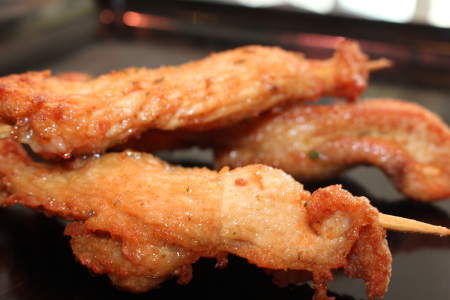 Sate- Spieße Zutaten: Zartes Putenbrustfleisch, Nuss-Nougat-Creme, Minze, Basilikum, Pfeffer und Salz. Zubereitung: Bitte braten Sie das Fleisch scharf in einer heißen Pfanne an und lassen es danach für 10 Minuten im vorgeheizten Ofen bei 120° Grad fertig ziehen! Unser Tipp: Nehmen Sie zum anbraten Pflanzenöl und geben Sie einen Schuß geröstetes Sesamöl dazu. Serviervorschlag: Dazu passen ein frischer Sommersalat, gebackene …