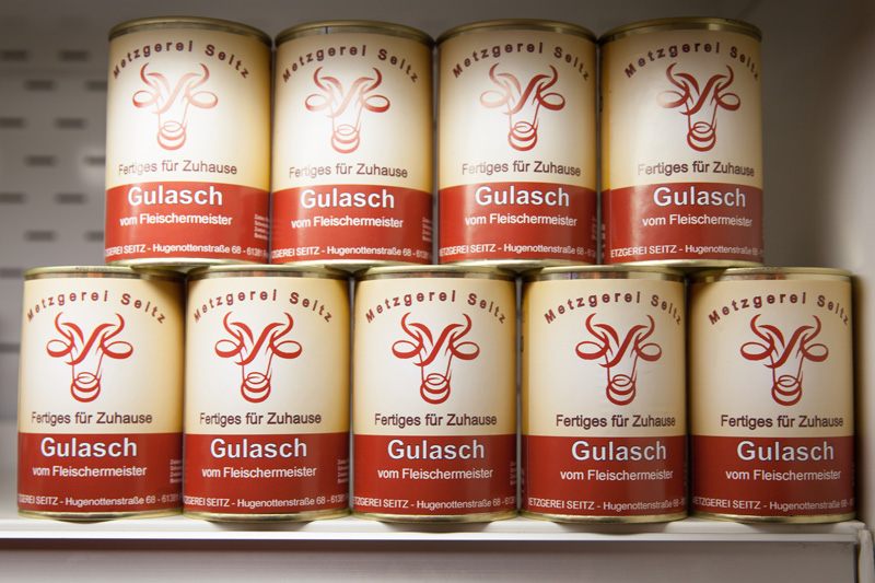 Bauernbratwurst, Presskopf, Hausmacher Leberwurst, Hausmacher Blutwurst, Bierschinken, Bierwurst, Schinkenwurst, Friedrichsdorfer Blutwurst, Rinderrouladen, Gulaschsuppe, Gulasch und noch viel mehr …