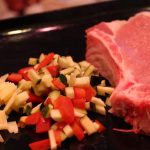 Schweinefleisch, Aubergine, Paprika, Zwiebel,Emmentaler und Kräuter.